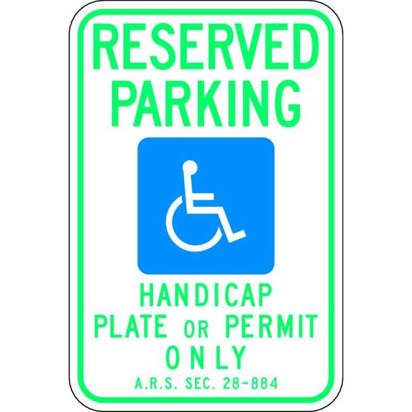Reserved Parking Handicap Plate Or Permit Only A.R.S. SEC. 28-884