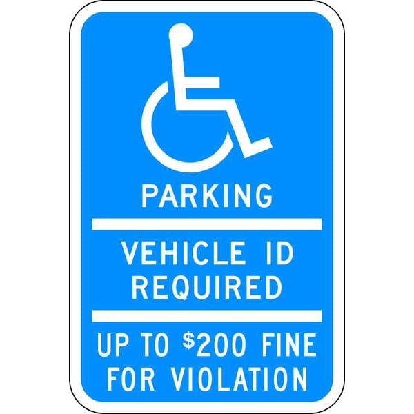 ADA Handicapped Parking Sign, Height 18 in, Width 12 in, Sign Material Aluminum, Sign Mounting Style Mounting Holes, Printed Language English, Sign Shape Vertical Rectangle