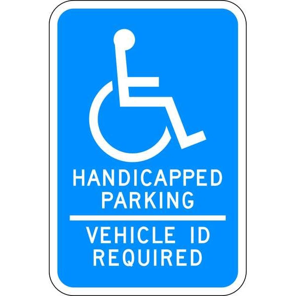 ADA Handicapped Parking Sign, Height 18 in, Width 12 in, Sign Material Aluminum, Sign Mounting Style Mounting Holes, Printed Language English, Sign Shape Vertical Rectangle