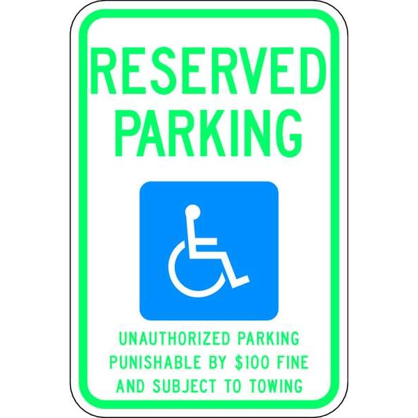 ADA Handicapped Parking Sign, Height 18 in, Width 12 in, Sign Material Aluminum, Sign Mounting Style Mounting Holes, Printed Language English, Sign Shape Vertical Rectangle