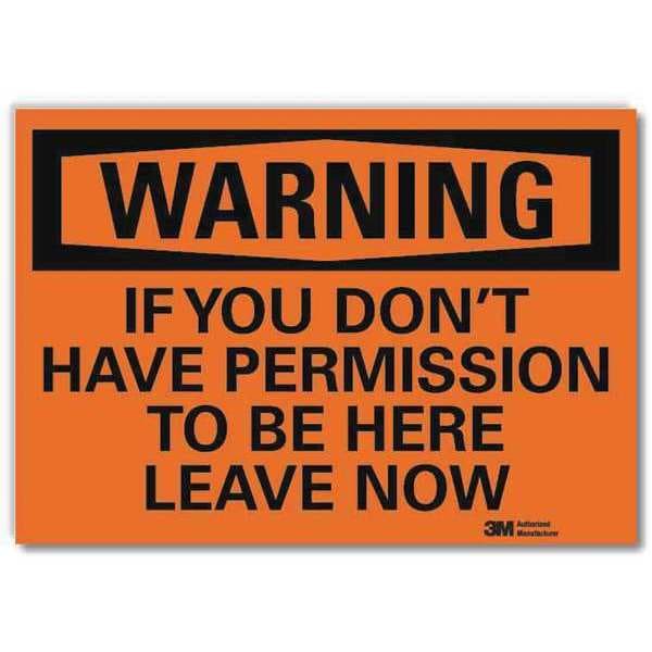 Security Sign, Vertical Rectangle, Number of Printed Sides 1, English, Sign Format Traditional OSHA, Sign Legend If You Don't Have Permission To Be Here Leave Now, Sign Legend Background Color Orange, Sign Legend Style Text