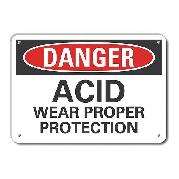 Aluminum Acid Danger Sign, Vertical Rectangle, Number of Printed Sides 1, English, Sign Format Traditional OSHA, Sign Legend Acid Wear Proper Protection, Sign Legend Background Color White, Sign Legend Style Text