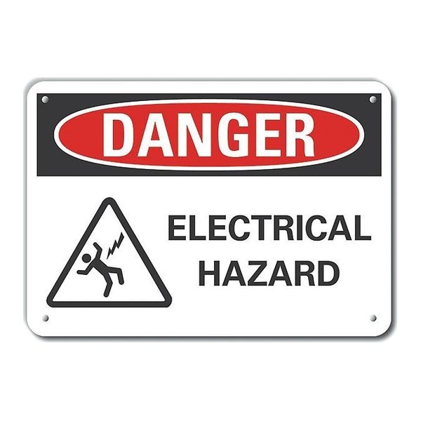 Aluminum Electrical Hazard Danger Sign, Horizontal Rectangle, Number of Printed Sides 1, English, Sign Format ANSI/OSHA Format, Sign Legend Electrical Hazard, Sign Legend Background Color White, Sign Legend Style Symbol and Text