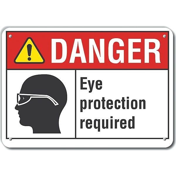 Aluminum Eye Danger Sign, Horizontal Rectangle, Number of Printed Sides 1, English, Sign Format ANSI/OSHA Format, Sign Legend Eye Protection Required, Sign Legend Background Color White, Sign Legend Style Symbol and Text