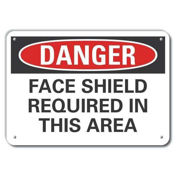 Aluminum Face Mask Danger Sign, Vertical Rectangle, Number of Printed Sides 1, English, Sign Format Traditional OSHA, Sign Legend Face Shield Required In This Area, Sign Legend Background Color White, Sign Legend Style Text