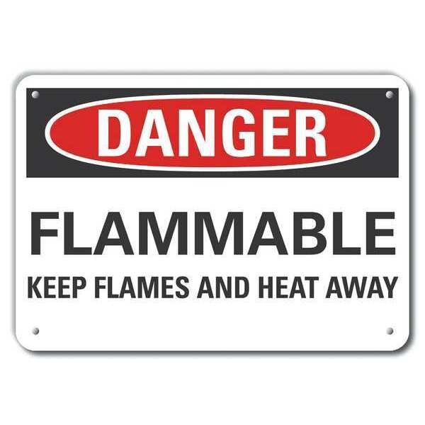 Danger Sign, Vertical Rectangle, Number of Printed Sides 1, English, Sign Format Traditional OSHA, Sign Legend Flammable Keep Flames And Heat Away, Sign Legend Background Color White, Sign Legend Style Text