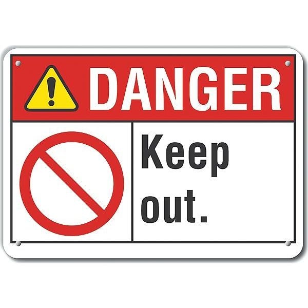 Aluminum Keep Out Danger Sign, Vertical Rectangle, Number of Printed Sides 1, English, Sign Format ANSI/OSHA Format, Sign Legend Keep Out., Sign Legend Background Color White, Sign Legend Style Symbol and Text