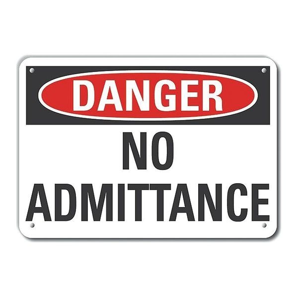 Aluminum No Admittance Danger Sign, Vertical Rectangle, Number of Printed Sides 1, English, Sign Format Traditional OSHA, Sign Legend No Admittance, Sign Legend Background Color White, Sign Legend Style Text