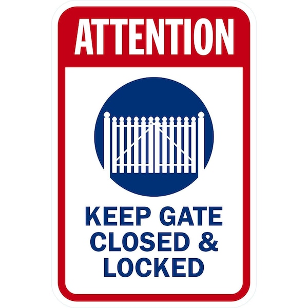 Attention Keep Gate Closed and Locked with Graphic, 12x18, High Intensity Prismatic, White