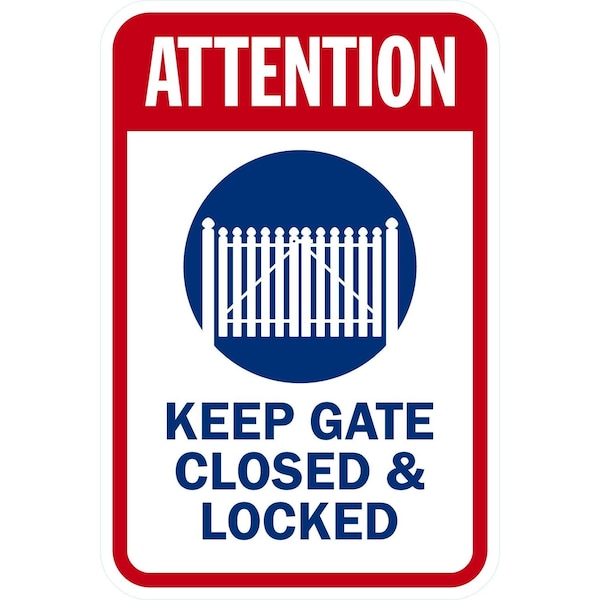 Attention Keep Gate Closed and Locked with Graphic, 12x18, Non-Reflective, White