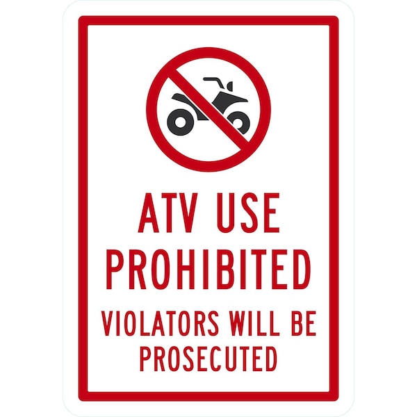 ATV Use Prohibited, Violators Will Be Prosecuted (with, 7x10, Non-Reflective, White