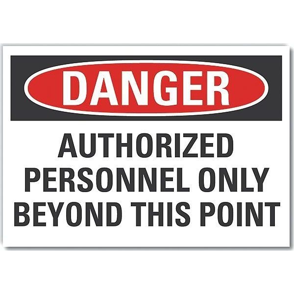 Authorized Personnel Danger Label, Horizontal Rectangle, Number of Printed Sides 1, English, Sign Format Traditional OSHA, Sign Legend Authorized Personnel Only Beyond This Point, Sign Legend Background Color White, Sign Legend Style Text