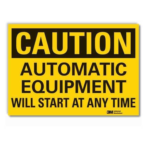 Automatic Equipment Caution Reflective Label, Horizontal Rectangle, Number of Printed Sides 1, English, Sign Format Traditional OSHA, Sign Legend Automatic Equipment Will Start At Any Time, Sign Legend Background Color Yellow, Sign Legend Style Text