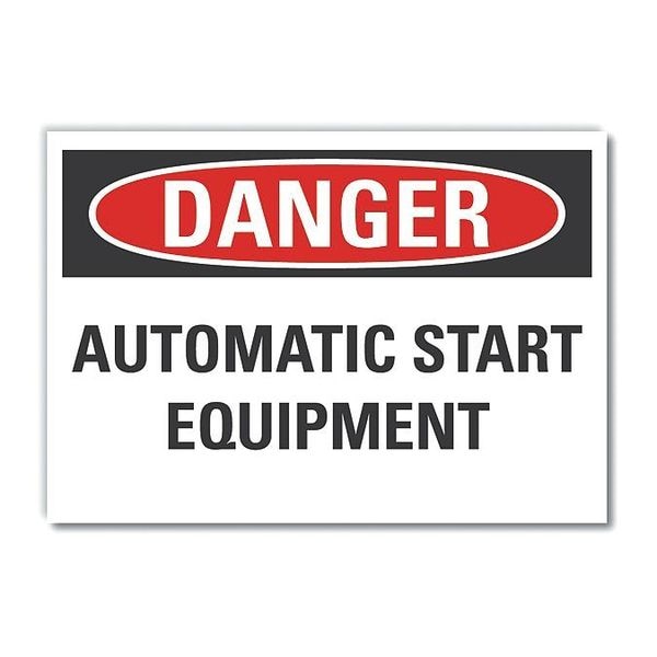 Automatic Equipment Danger Label, Horizontal Rectangle, Number of Printed Sides 1, English, Sign Format Traditional OSHA, Sign Legend Automatic Start Equipment, Sign Legend Background Color White, Sign Legend Style Text