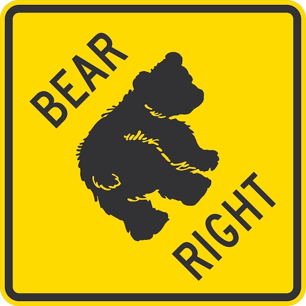 Bear (Keep Right), 24x24, Diamond Grade, Yellow