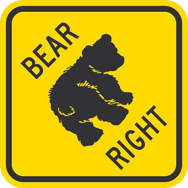 Bear Right Crossing Symbol, 12x12, Diamond Grade, Yellow