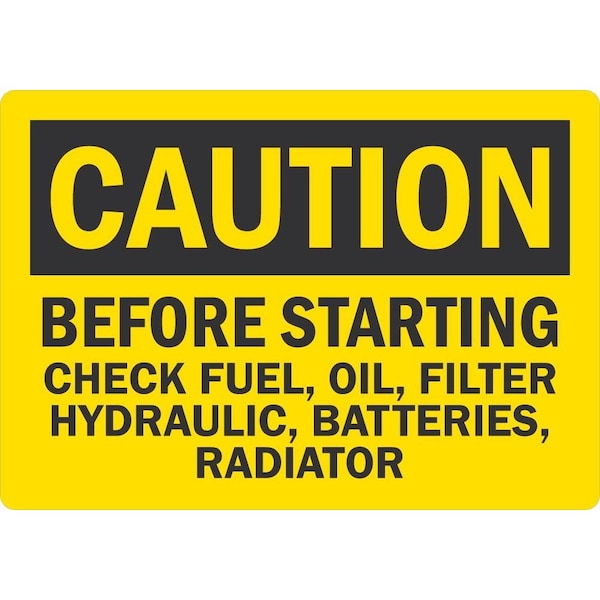 Before Starting Check Fuel, Oil, Filter, Hydraulic, , 5x3.5, Engineer Grade, Yellow