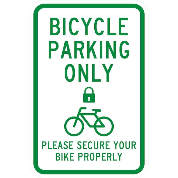 Bicycle Parking Only Please Secure Your Bike, 12x18, Engineer Grade, White