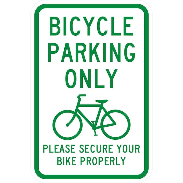 Bicycle Parking Only Please (Sym) Please Secure, 12x18, Diamond Grade, White