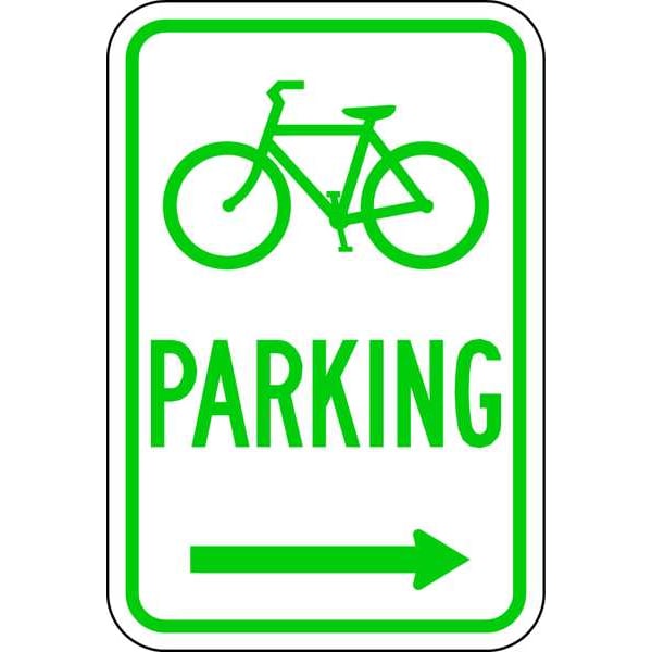 Bicycle Parking Right Arrow Parking Sign, Height 18 in, Width 12 in, Sign Material Aluminum, Sign Mounting Style Mounting Holes, Printed Language English, Sign Shape Vertical Rectangle