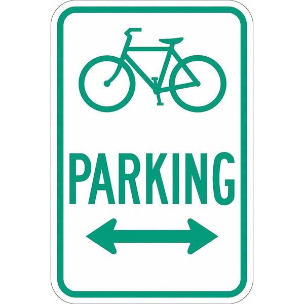 Bicycle Parking Double Arrow Parking Sign, Height 18 in, Width 12 in, Sign Material Aluminum, Sign Mounting Style Mounting Holes, Printed Language English, Sign Shape Vertical Rectangle