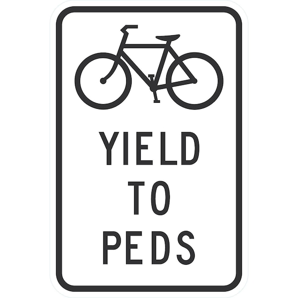 (Bicyclists symbol) Yield to Peds, 12x18, Engineer Grade, White