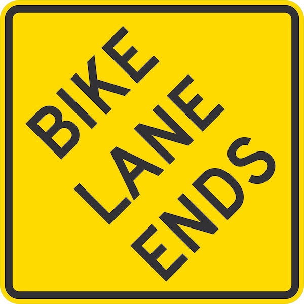 Bike Lane Ends, 24x24, Engineer Grade, Yellow
