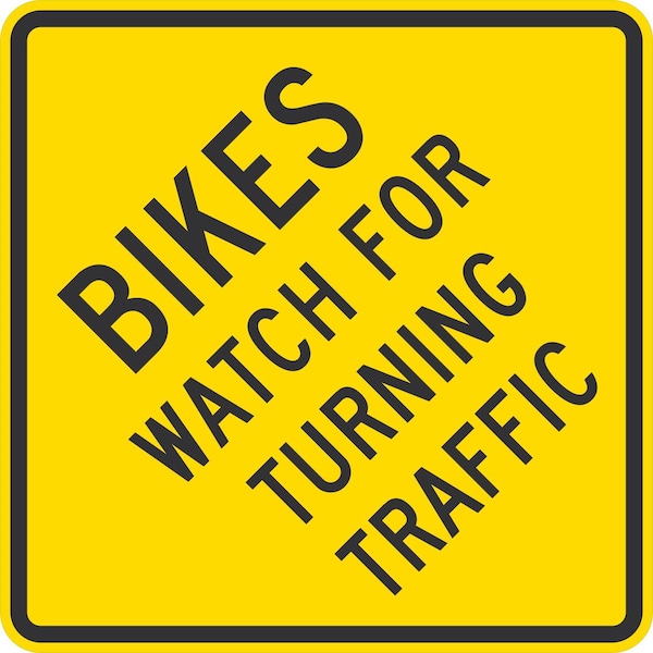 Bikes Watch For Turning Traffic, 24x24, Engineer Grade, Yellow