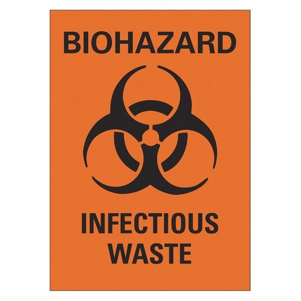Biohazard Sign, Horizontal Rectangle, Number of Printed Sides 1, English, Sign Legend Biohazard Infectious Waste, Sign Legend Background Color Orange, Sign Legend Style Symbol and Text