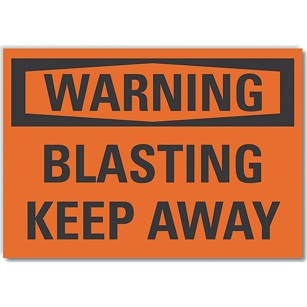 Blasting Area Warning Label, Horizontal Rectangle, Number of Printed Sides 1, English, Sign Format Traditional OSHA, Sign Legend Blasting Keep Away, Sign Legend Background Color Orange, Sign Legend Style Text