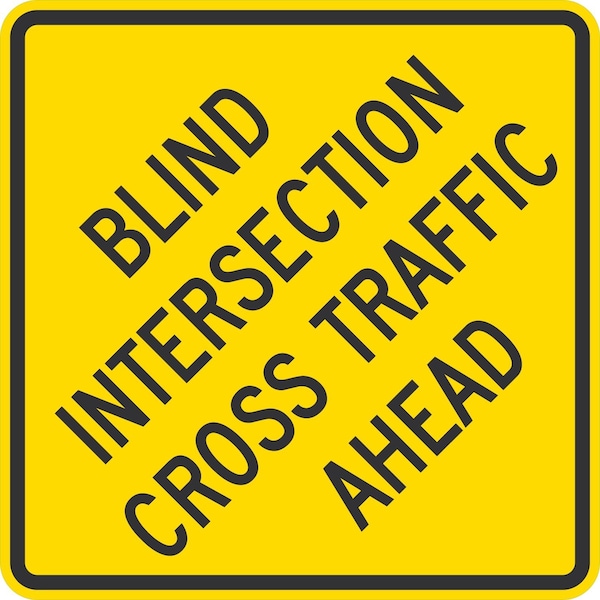 Blind Intersection Cross Traffic Ahead, 30x30, Diamond Grade, Yellow