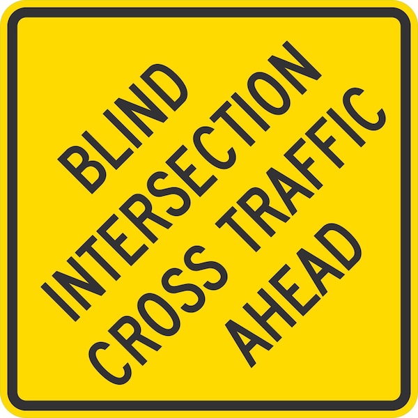 Blind Intersection Cross Traffic Ahead, 36x36, Engineer Grade, Yellow