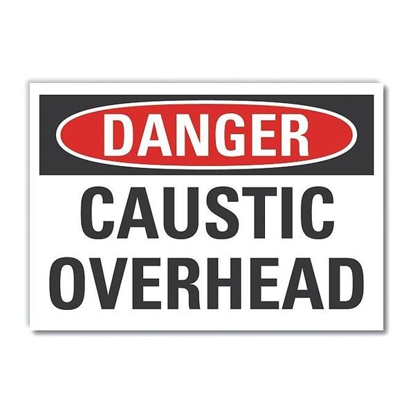 Caustic Danger Reflective Label, Horizontal Rectangle, Number of Printed Sides 1, English, Sign Format Traditional OSHA, Sign Legend Caustic Overhead, Sign Legend Background Color White, Sign Legend Style Text