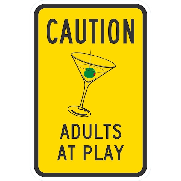 Caution Adults at Play with Graphic, 12x18, Engineer Grade, Yellow