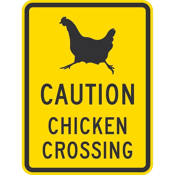 Caution, Chicken Crossing, 18x24, Non-Reflective, Yellow