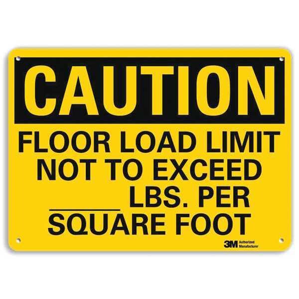 Caution Sign, Vertical Rectangle, Number of Printed Sides 1, English, Sign Format Traditional OSHA, Sign Legend Floor Load Limit Not To Exceed ___ Lbs. Per Square Foot, Sign Legend Background Color Yellow, Sign Legend Style Text