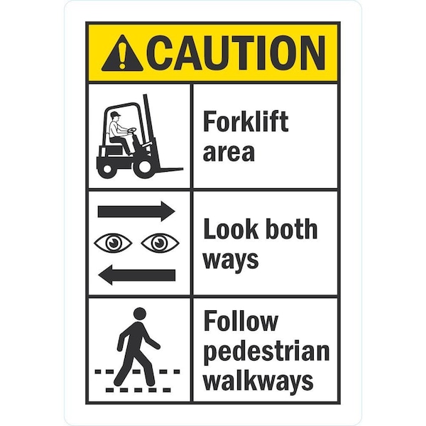 Caution Forklift Area, Look Both Ways, Follow, 3.5x5, Non-Reflective, White