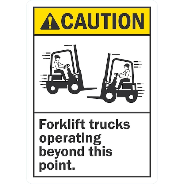 Caution Forklift Trucks Operating Beyond This Point, 5x7, Non-Reflective, White