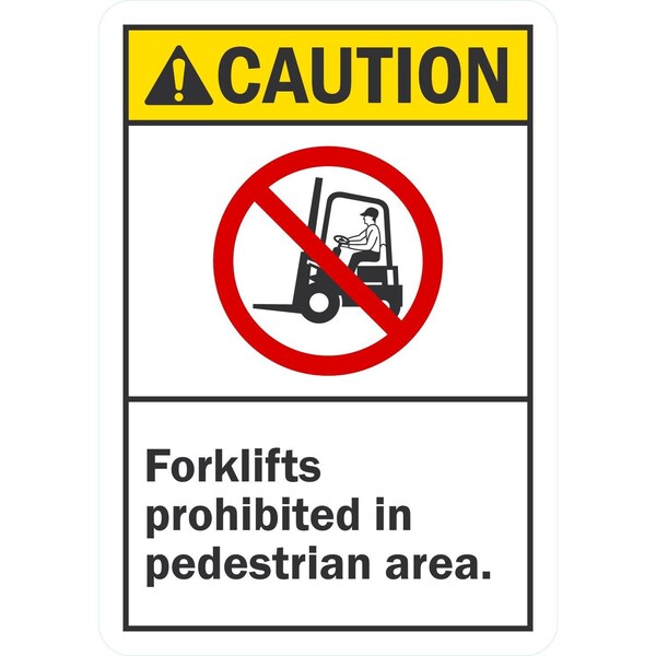 Caution Forklifts Prohibited In Pedestrian, 7x10, Non-Reflective, White