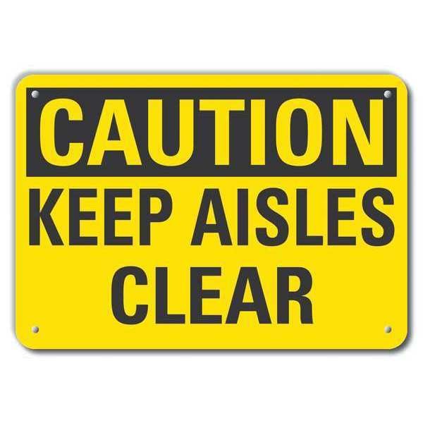 Caution, Keep Aisles Clear, 10 in W x 7 in H, Vertical Rectangle, Plastic, LCU3-0247-NP_10x7
