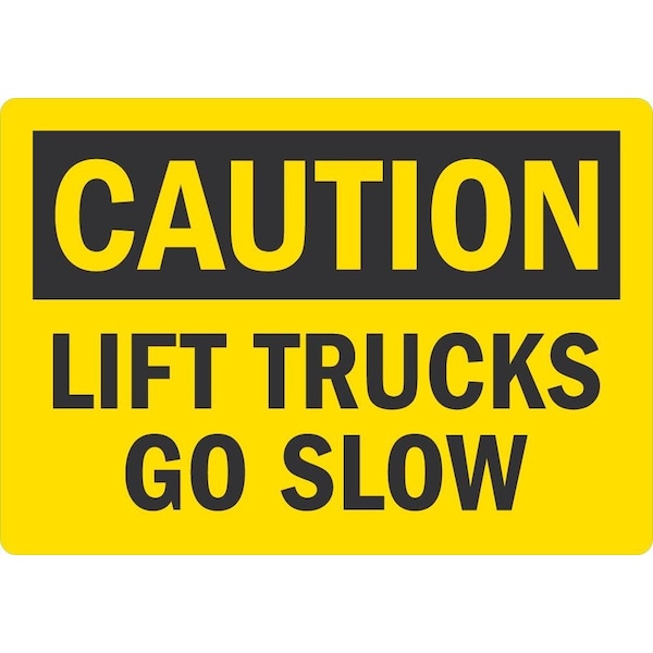 Caution Lift Trucks Go Slow, 5x3.5, Non-Reflective, Yellow