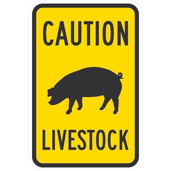 Caution Livestock with Pig Silo Symbol, 12x18, Engineer Grade, Yellow