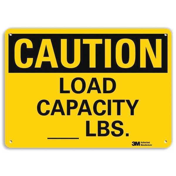 Caution Sign, Horizontal Rectangle, Number of Printed Sides 1, English, Sign Format Traditional OSHA, Sign Legend Load Capacity ___ Lbs., Sign Legend Background Color Yellow, Sign Legend Style Text