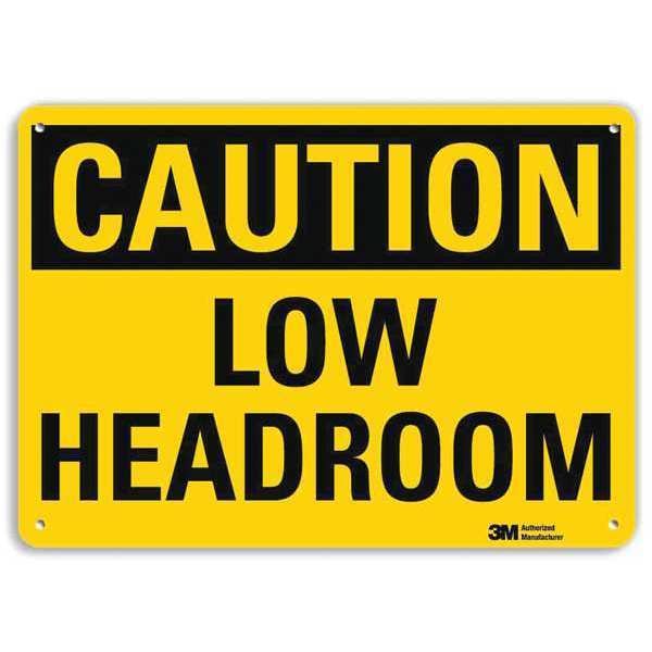 Caution Sign, Vertical Rectangle, Number of Printed Sides 1, English, Sign Format Traditional OSHA, Sign Legend Low Headroom, Sign Legend Background Color Yellow, Sign Legend Style Text