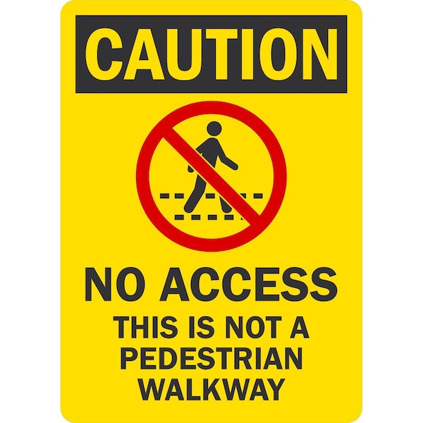 Caution No Access, Not a Pedestrian Walkway with Symbol, 10x14, Non-Reflective, Yellow