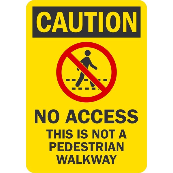 Caution No Access, Not a Pedestrian Walkway with Symbol, 7x10, Non-Reflective, Yellow
