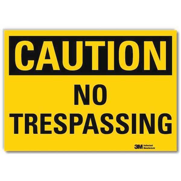 Safety Sign, Horizontal Rectangle, Number of Printed Sides 1, English, Sign Format Traditional OSHA, Sign Legend No Trespassing, Sign Legend Background Color Yellow, Sign Legend Style Text