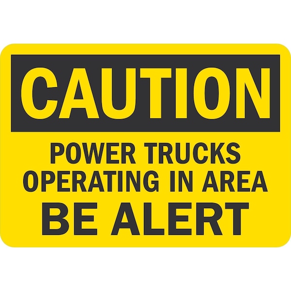 Caution Power Trucks Operating In Area Be Alert, 10x7, Non-Reflective, Yellow