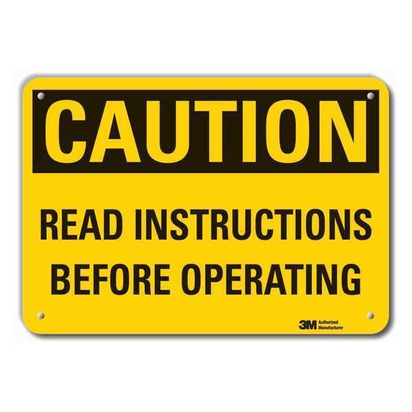 Caution, Read Instructions Before Operating, 7 in x 10 in, Aluminum, LCU3-0349-RA_10x7