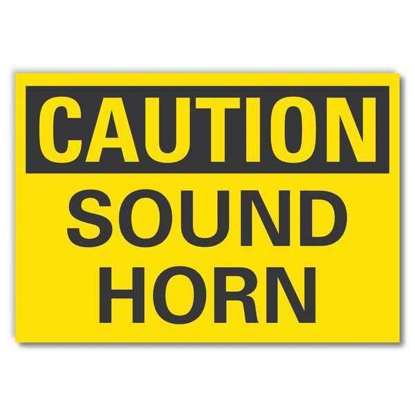 Caution Sign, Horizontal Rectangle, Number of Printed Sides 1, English, Sign Format Traditional OSHA, Sign Legend Sound Horn, Sign Legend Background Color Yellow, Sign Legend Style Text
